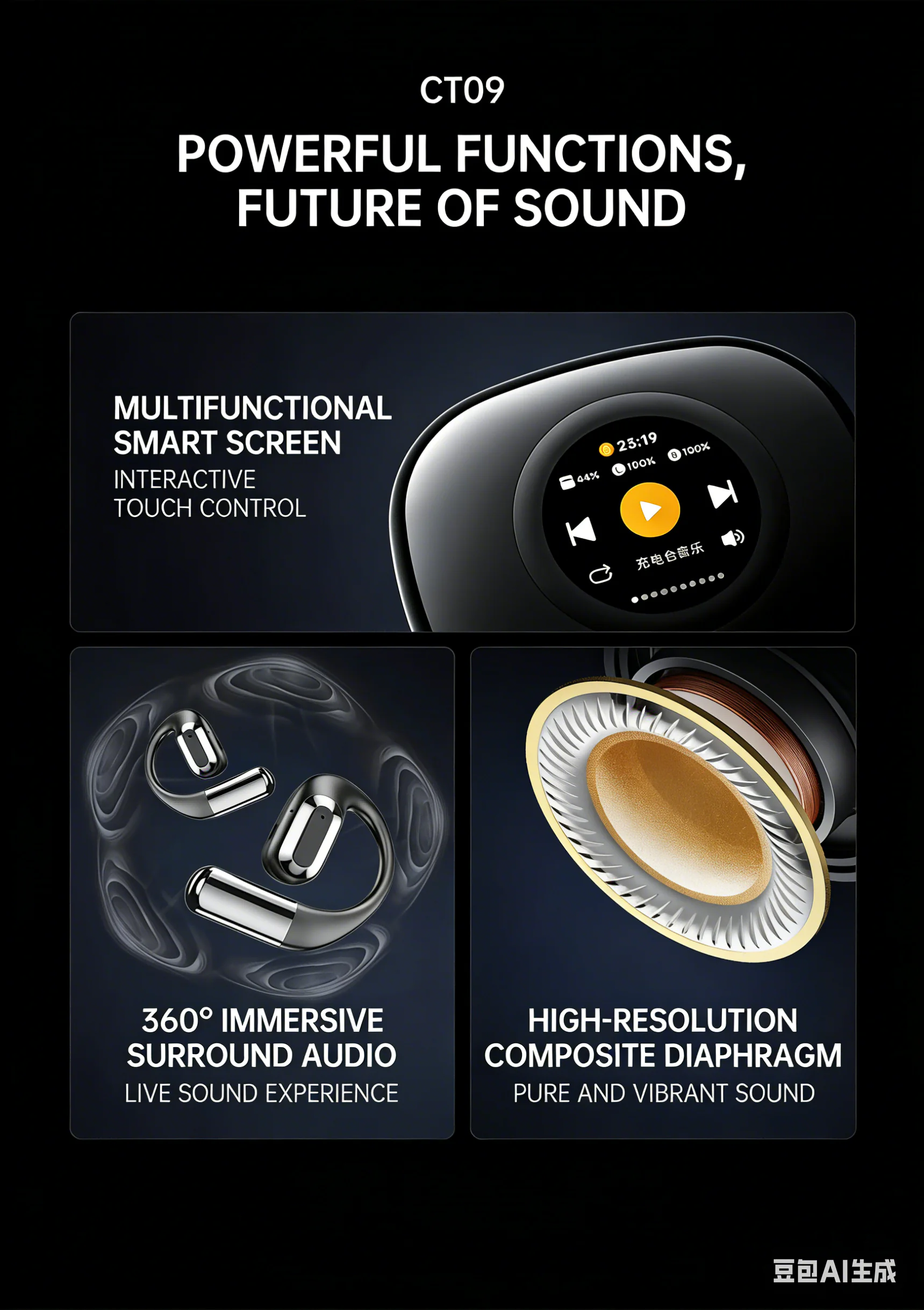 Non ear damaging smart screen Bluetooth earphones