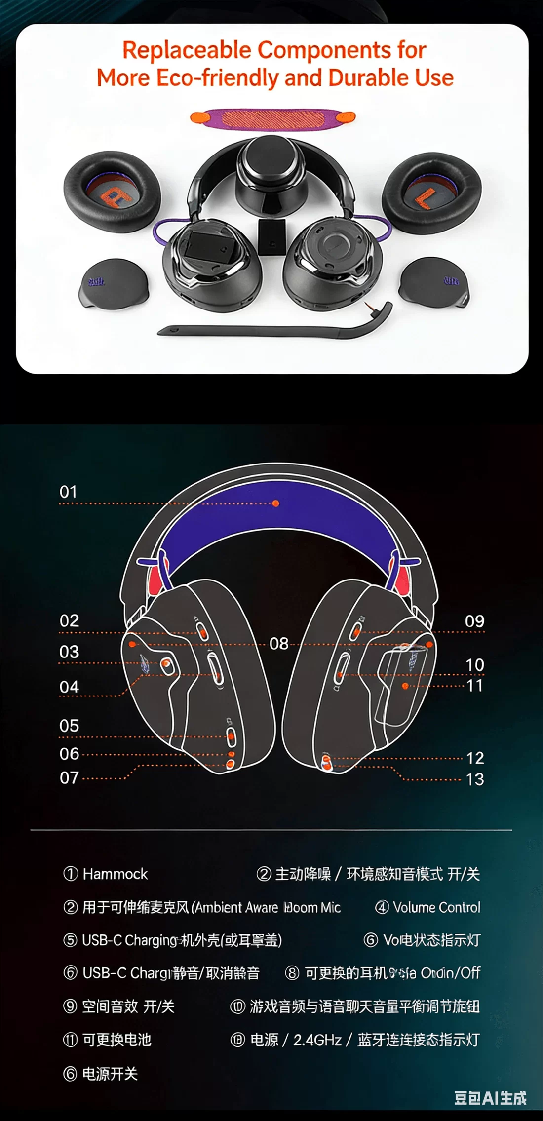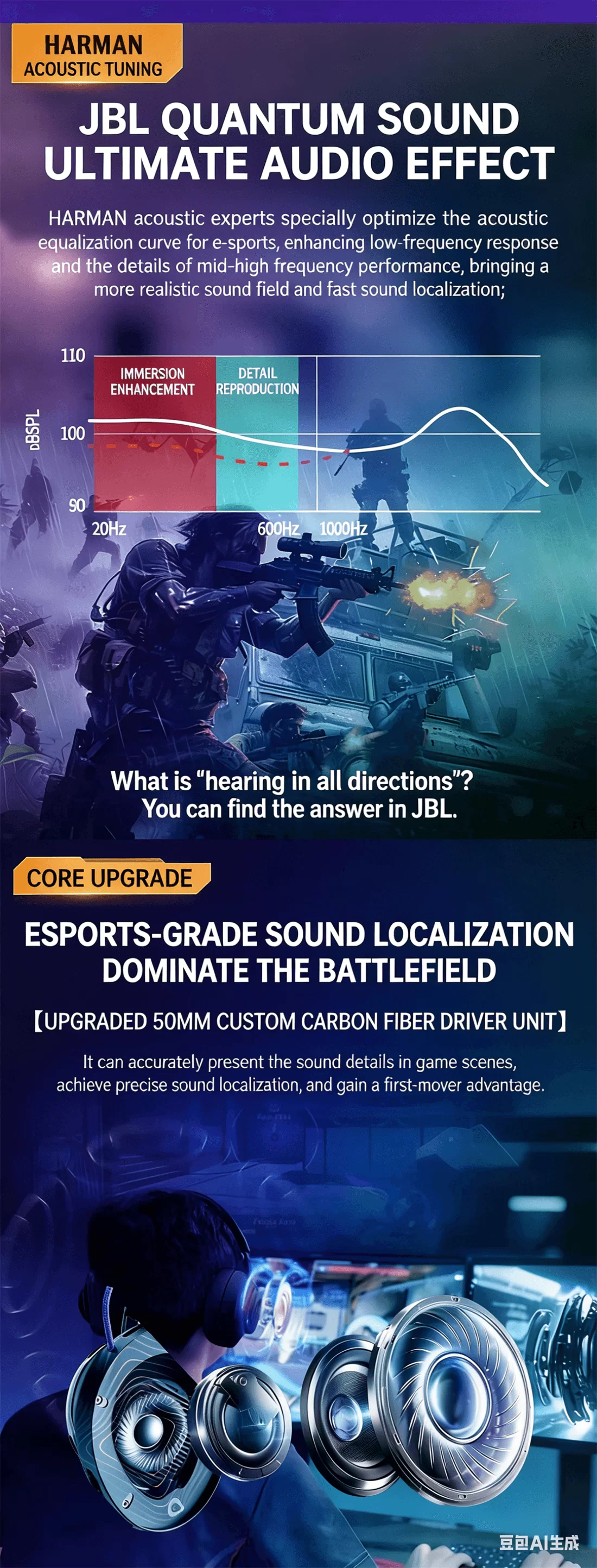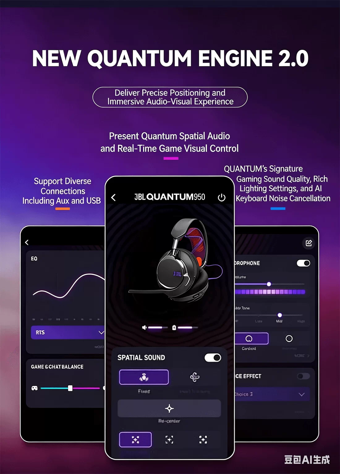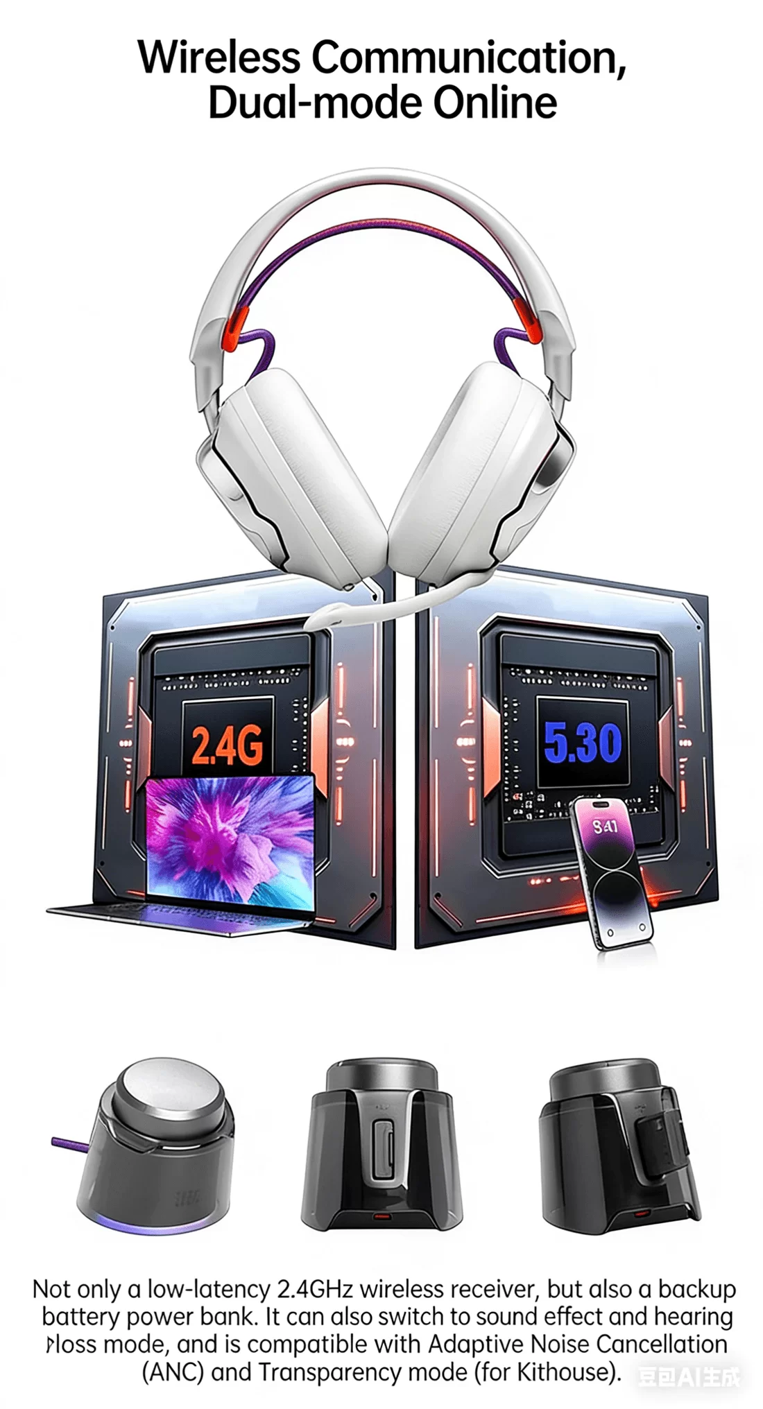 Quantum950 Head-mounted 2.G/Bluetooth/wired and wireless gaming e-sports headphones
